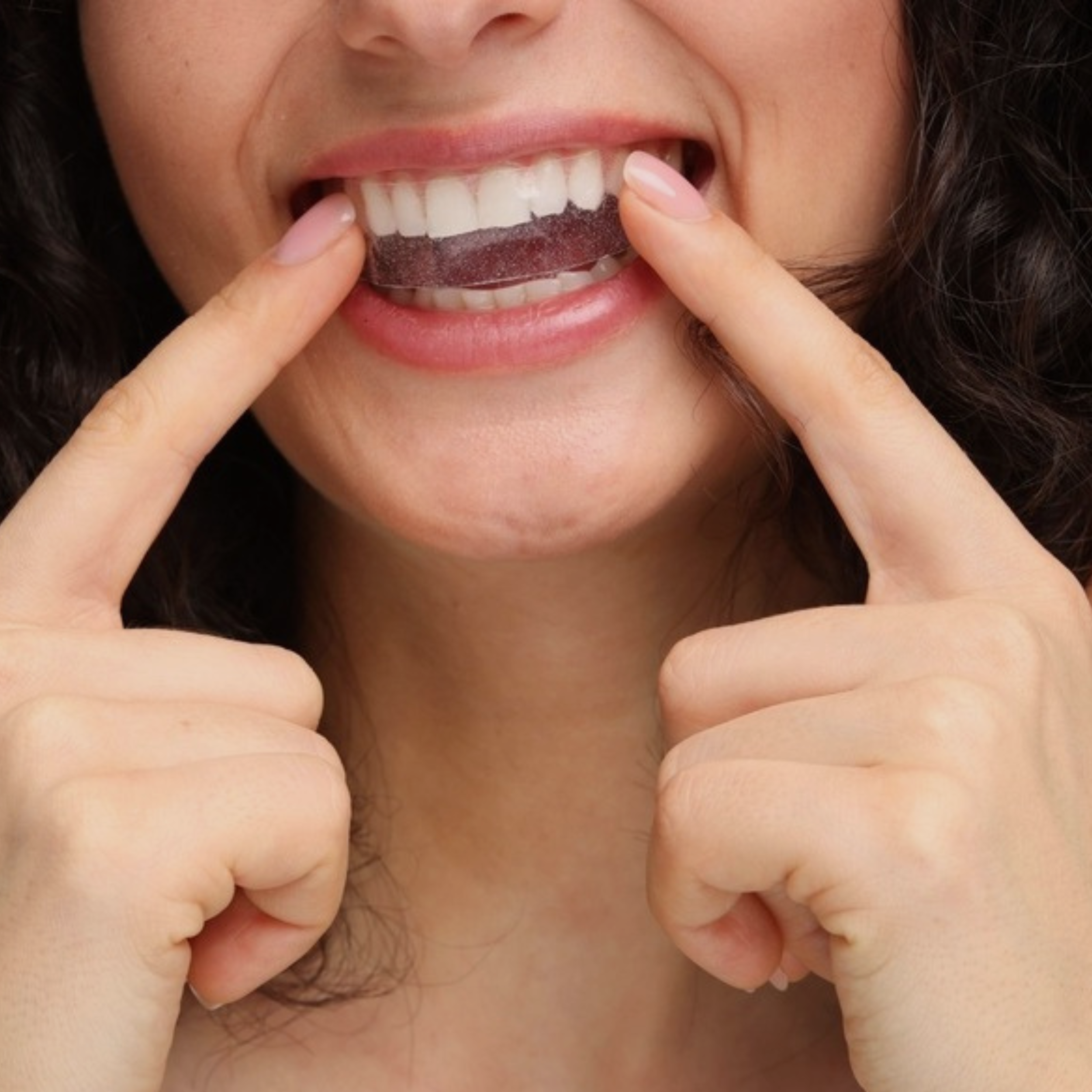 After 20–30 minutes, remove and rinse to reveal a noticeably brighter smile.
